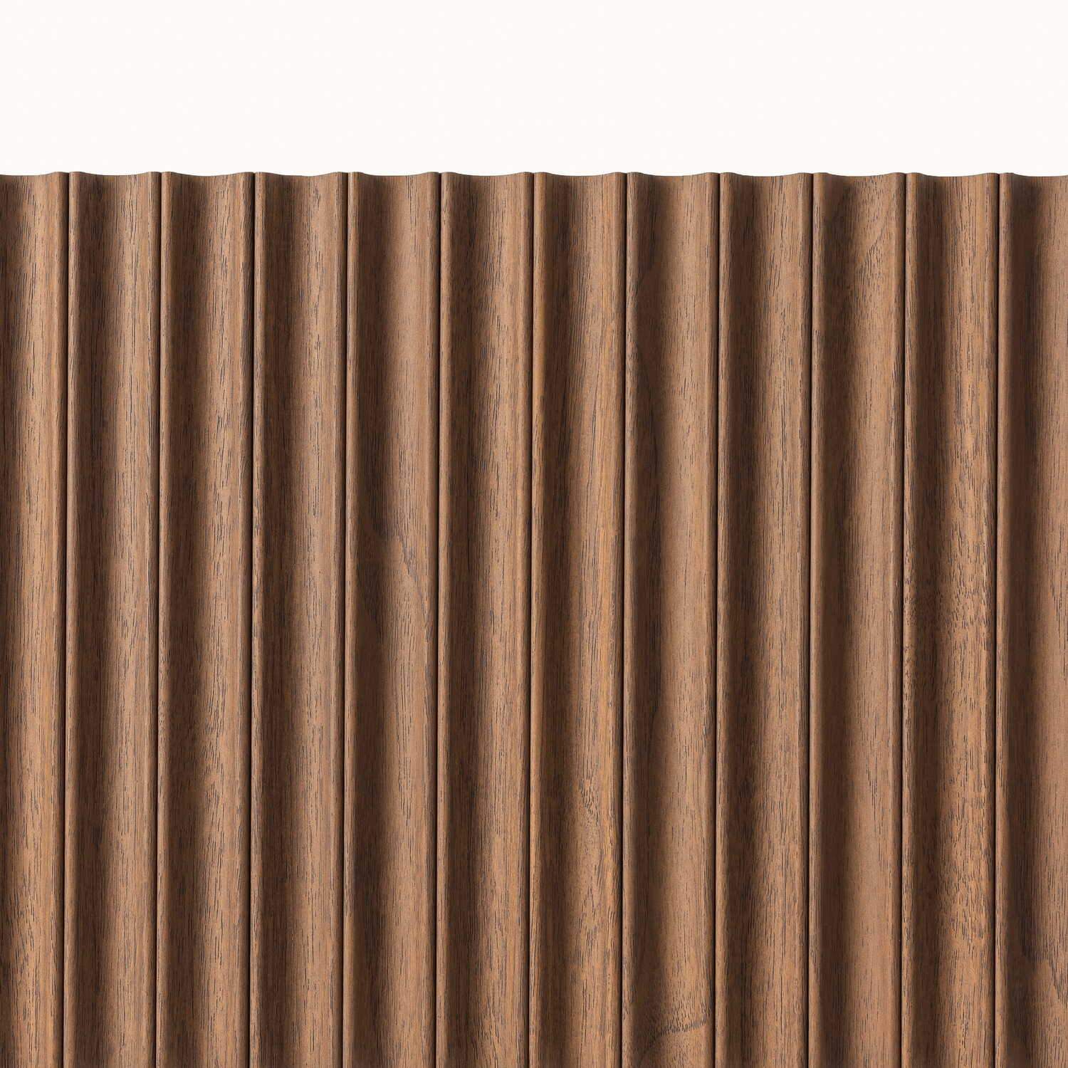 Gently curved fluted profiles introduce depth and movement, offering a refined take on vertical panelling. Inspired by classic tambour panelling Fluted is available in Light Oak and Deep Walnut, it suits both modern feature walls and softly layered interiors.