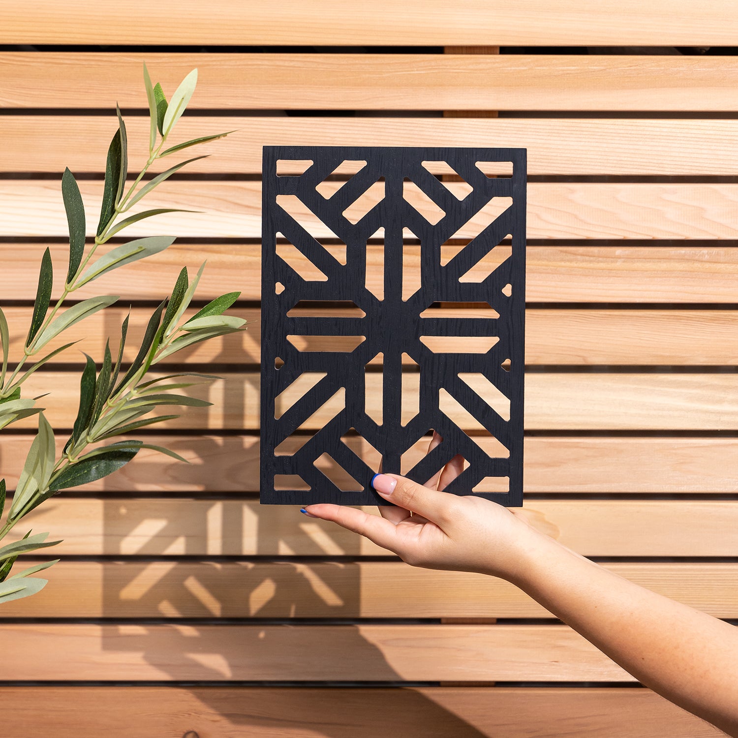 Samples are provided to showcase the material, colour and finish of our Decorative Garden Screens. Please note that the pattern scale shown on a sample may differ from the full-size decorative screen, and variations in scale, colour tone and material appearance may occur when viewed across larger panels.