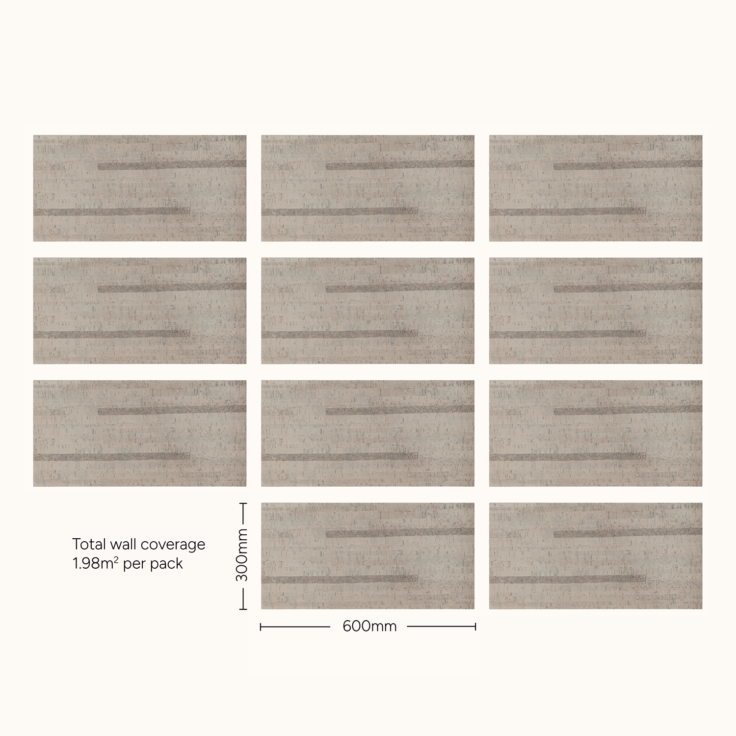One pack of CorkWall Evora Natural includes 11 tiles that are easy to install with grab adhesive.