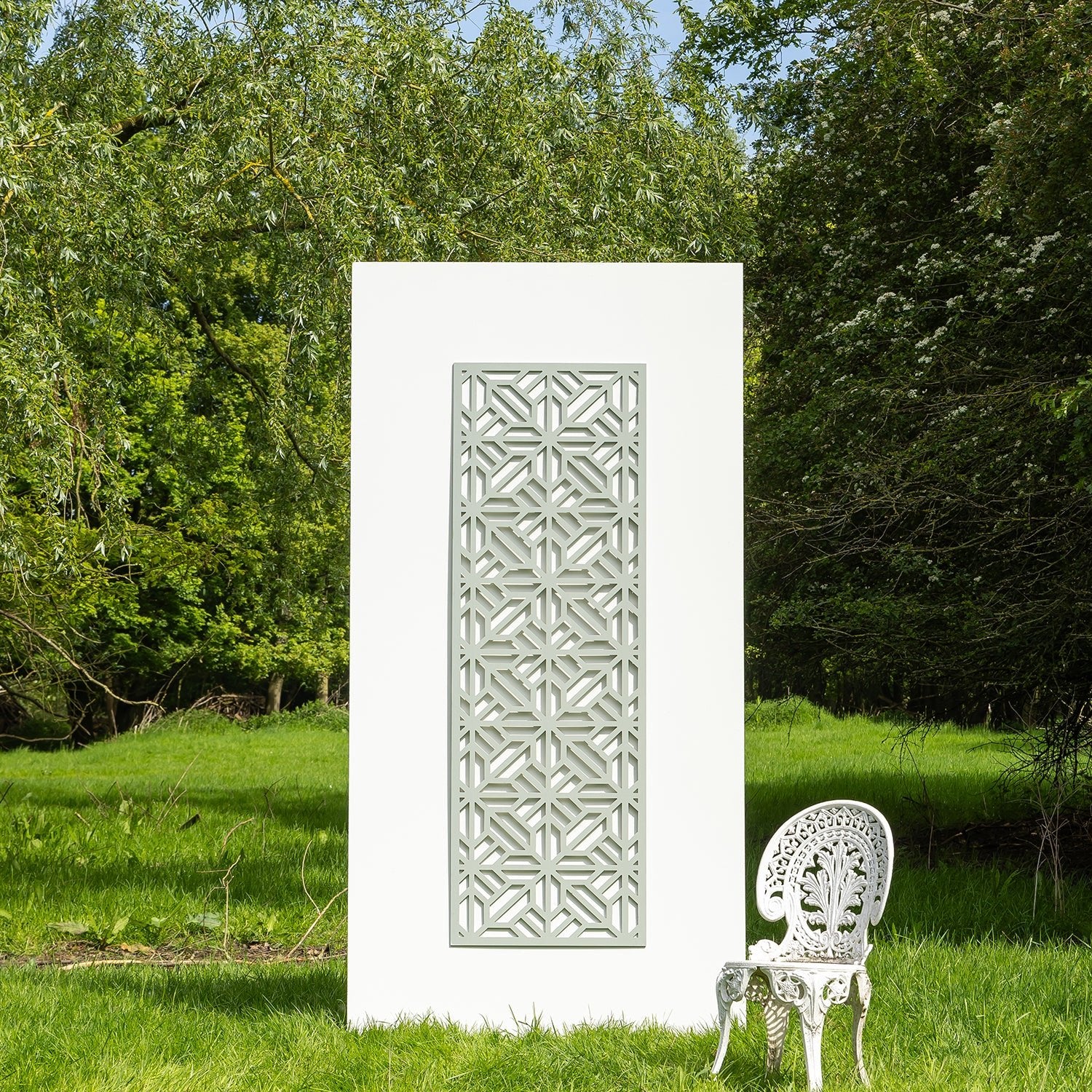 Samples are provided to showcase the material, colour and finish of our Decorative Garden Screens. Please note that the pattern scale shown on a sample may differ from the full-size decorative screen, and variations in scale, colour tone and material appearance may occur when viewed across larger panels.