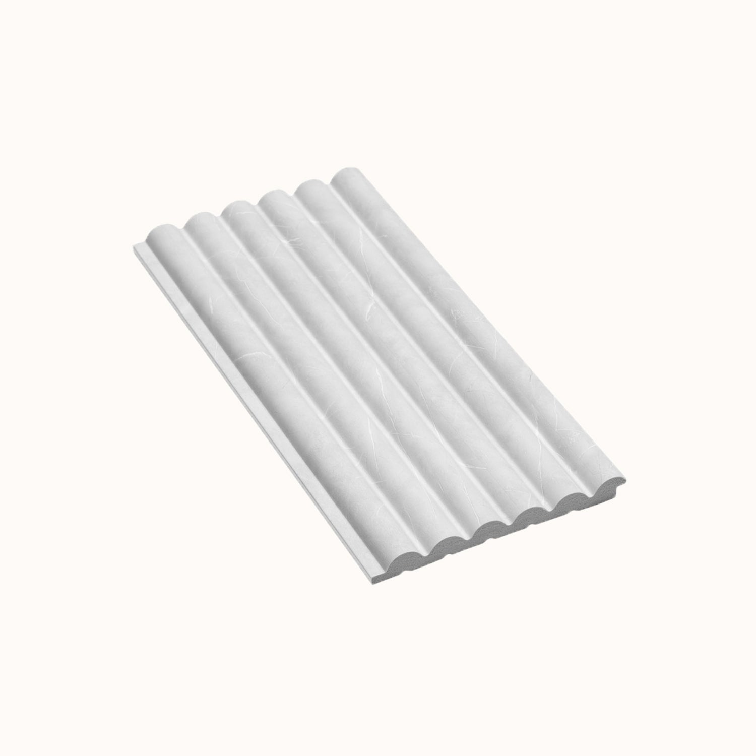 Want to add a luxurious vibe to your interior design? Sample our Reeded Waterproof White Mable panelling. This style features a warm stone effect, adding further depth to the curved profile. It's ideal for transforming plain walls into intriguing surfaces that make an elegant statement.