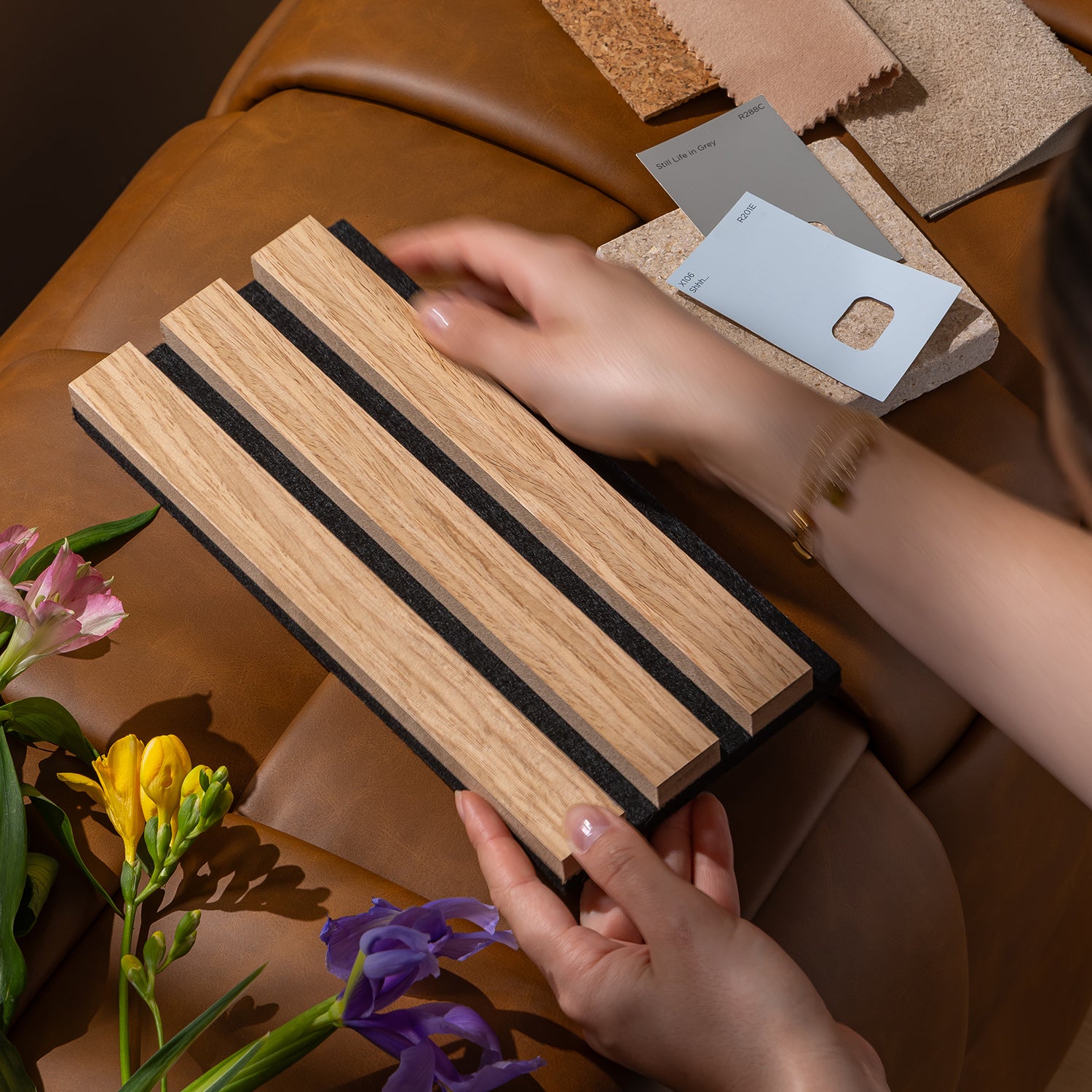 The only UK-made Acoustic SlatWall panels upgraded with a premium oiled finish - designed for spaces that demand more. Each panel is expertly finished in-house using Rubio Monocoat oil technology - a professional-grade, VOC-free treatment trusted worldwide. This enhances durability, resists wear, UV fading, and stains, while enriching the natural wood tone for a finish standard panel’s can’t match. Discover a spectrum of exclusive shades - from soft Whitewashed tones to rich Golden Oaks and deep Walnuts.