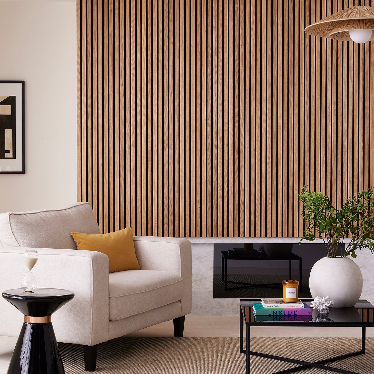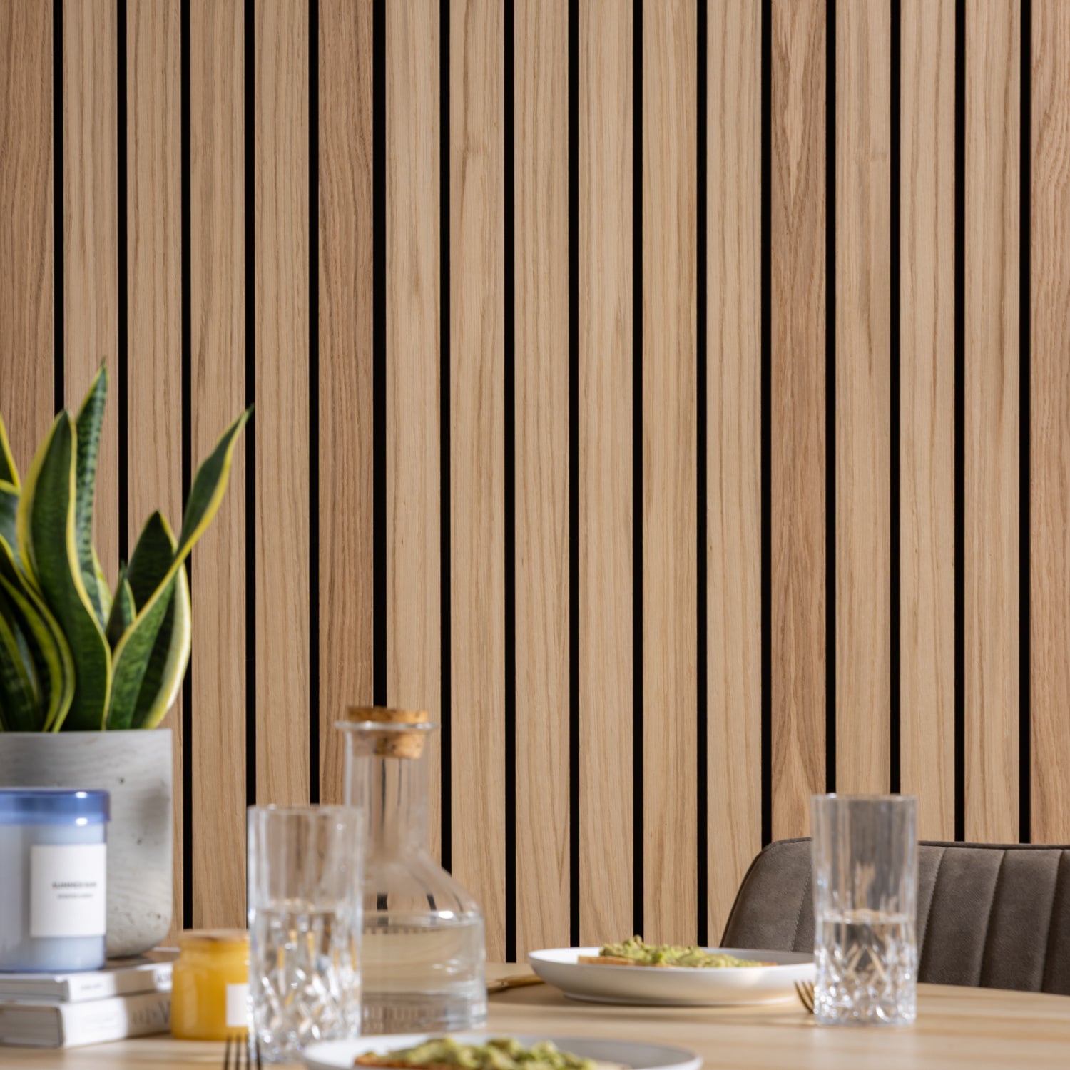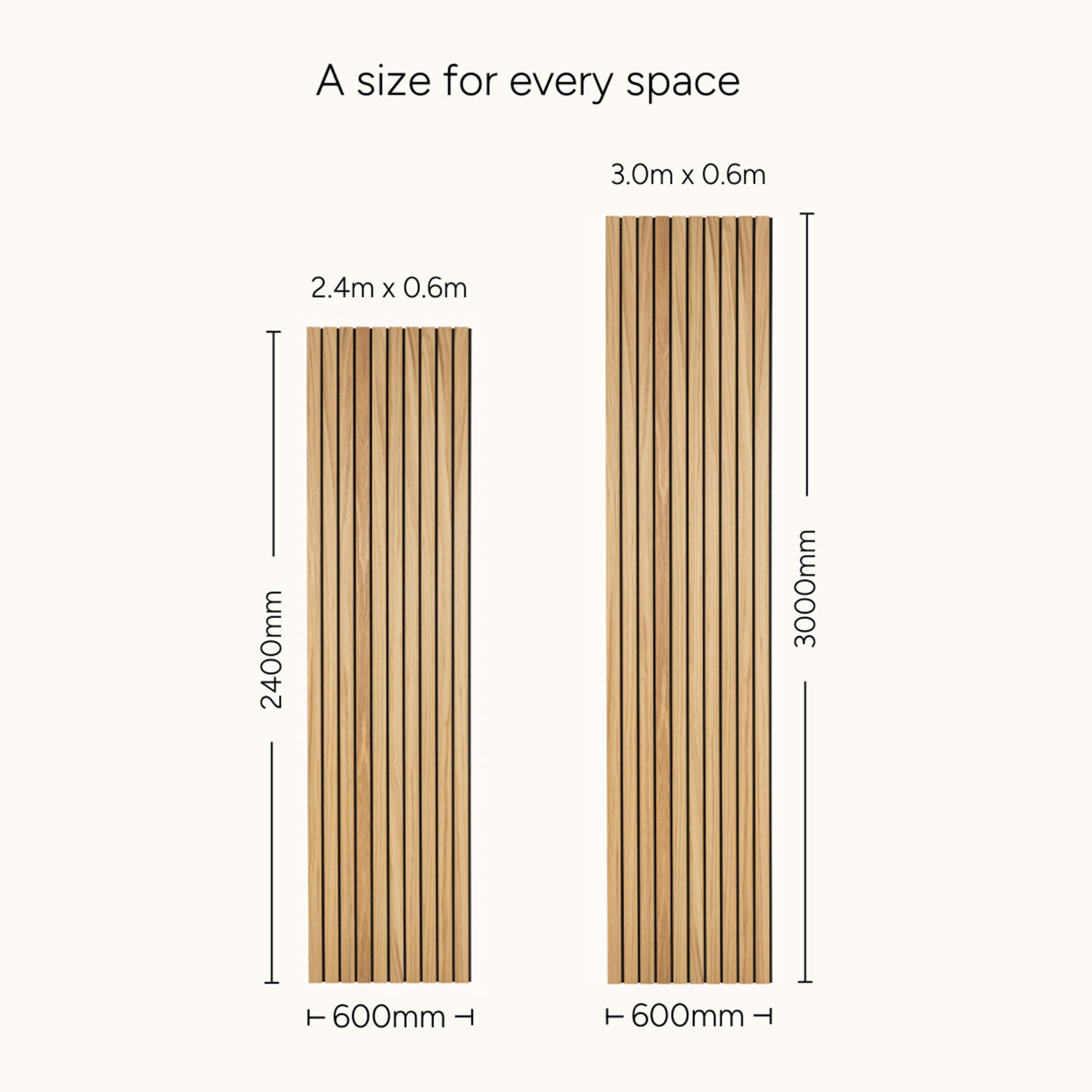 Standard slat width offers a familiar, classic profile with uniform spacing - balancing veneer and felt for a timeless look that suits a wide range of interiors.