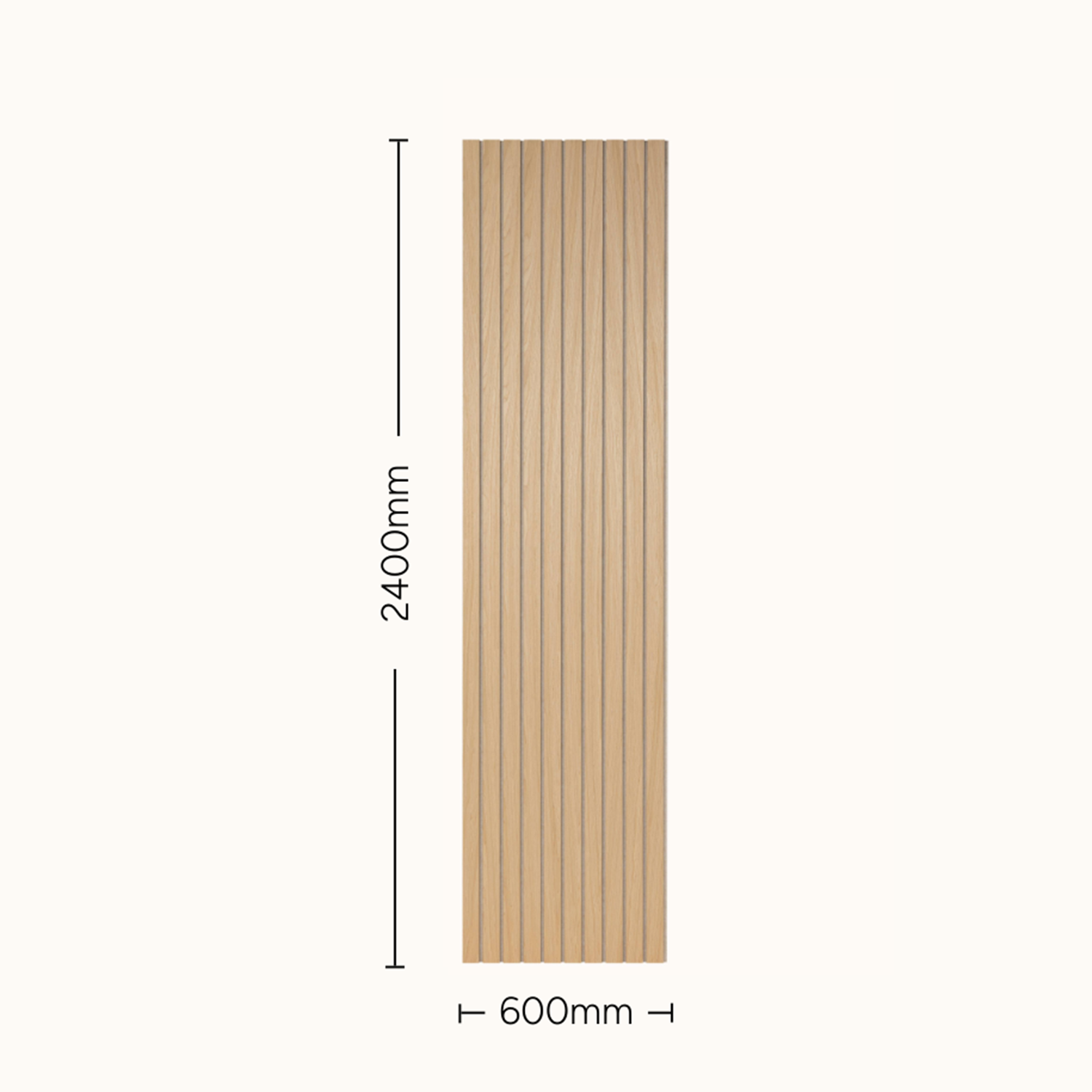 Standard slat width offers a familiar, classic profile with uniform spacing - balancing veneer and felt for a timeless look that suits a wide range of interiors.