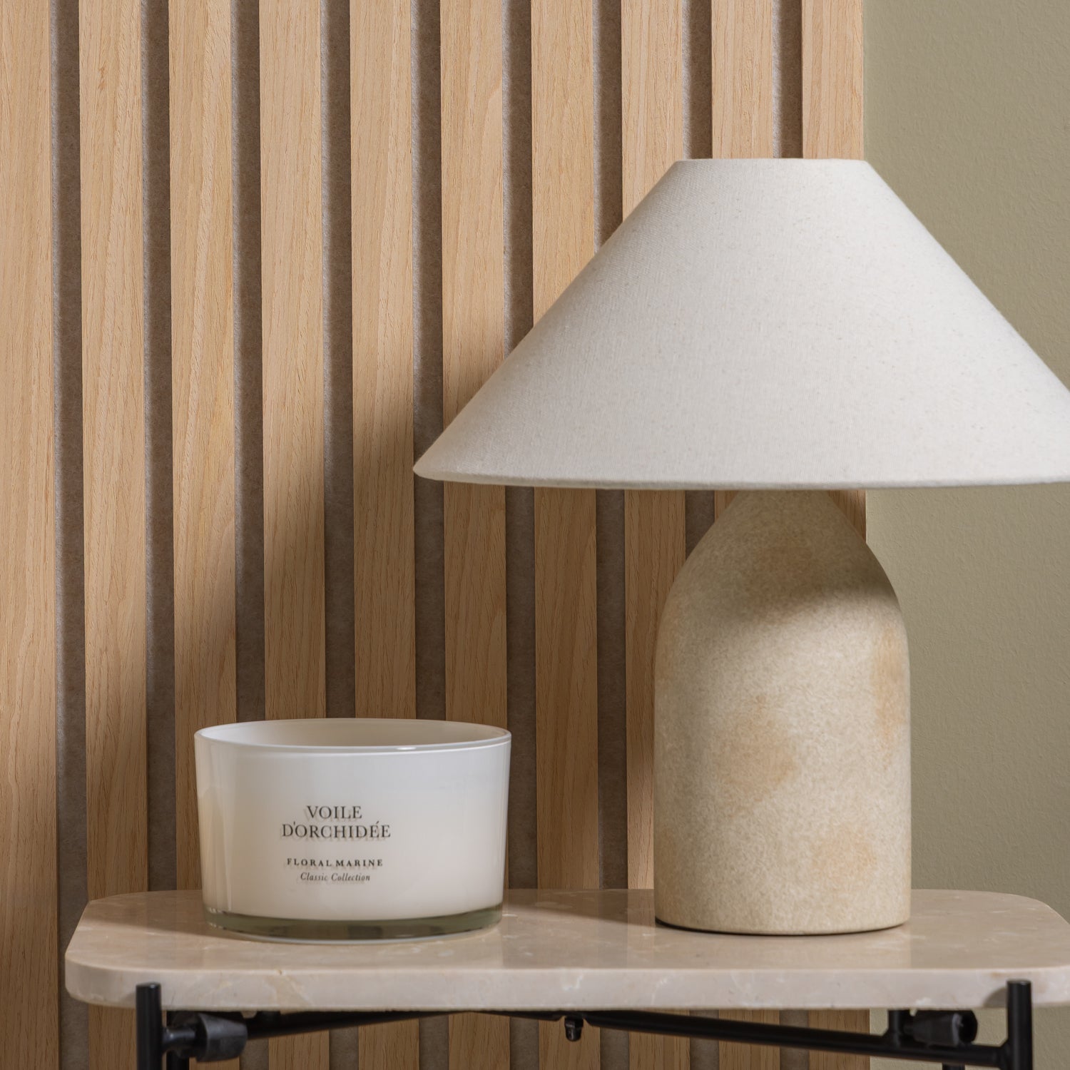 Standard Slat width: Standard slat width offers a familiar, classic profile with uniform spacing - balancing veneer and felt for a timeless look that suits a wide range of interiors