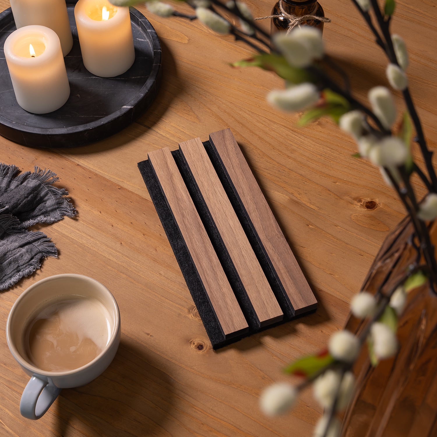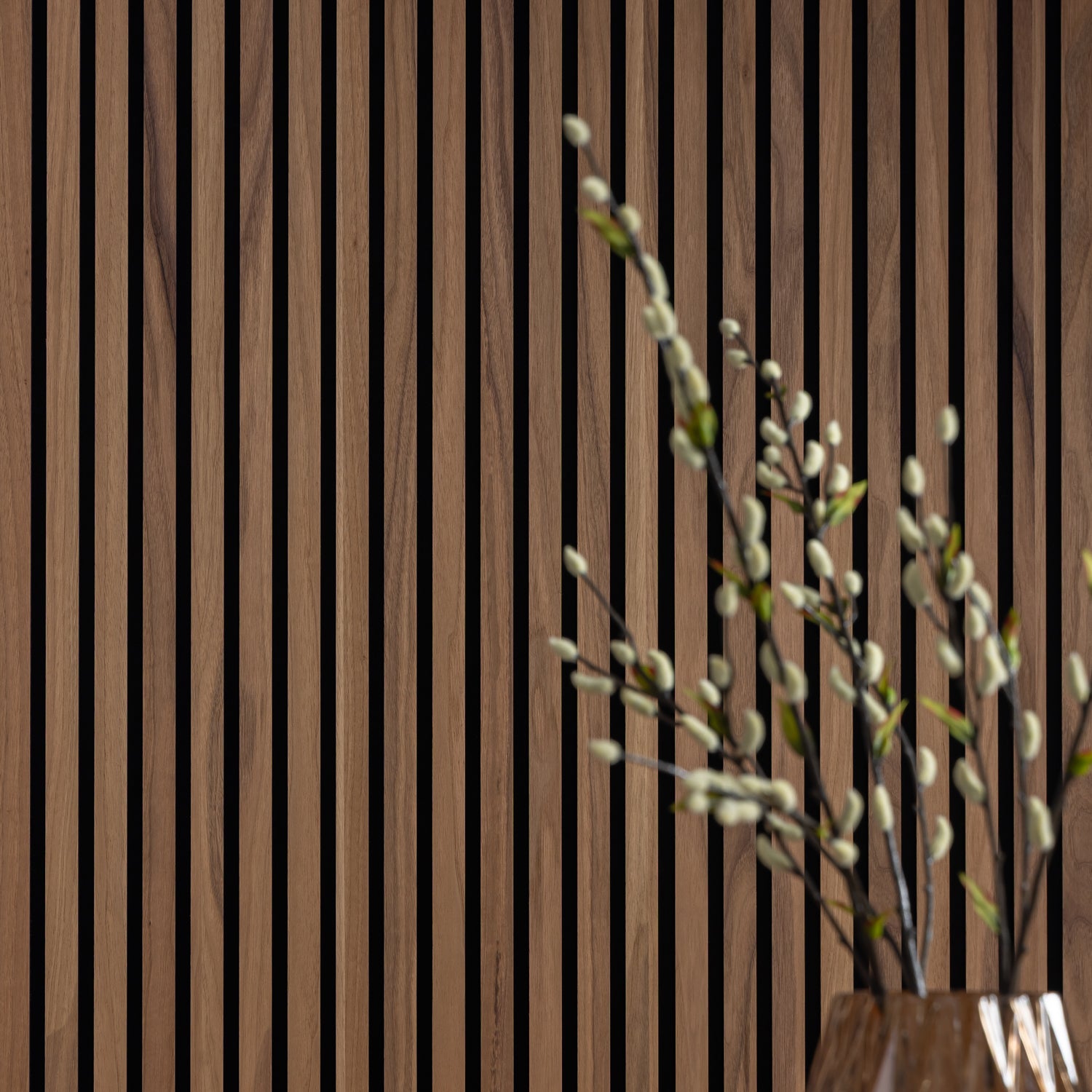Acoustic Benefits: This SlatWall Acoustic panel is crafted by us at our Yorkshire workshop, ensuring a high-quality finish beyond compare. Each panel is assembled from MDF slats topped with a premium wood veneer, bonded to recycled felt with extra-strong adhesive. Our felt backing features acoustic properties and helps to reduce noise, enhancing your interior's acoustics.
