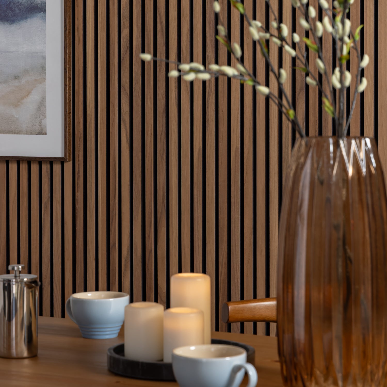 Standard slat width offers a familiar, classic profile with uniform spacing - balancing veneer and felt for a timeless look that suits a wide range of interiors.