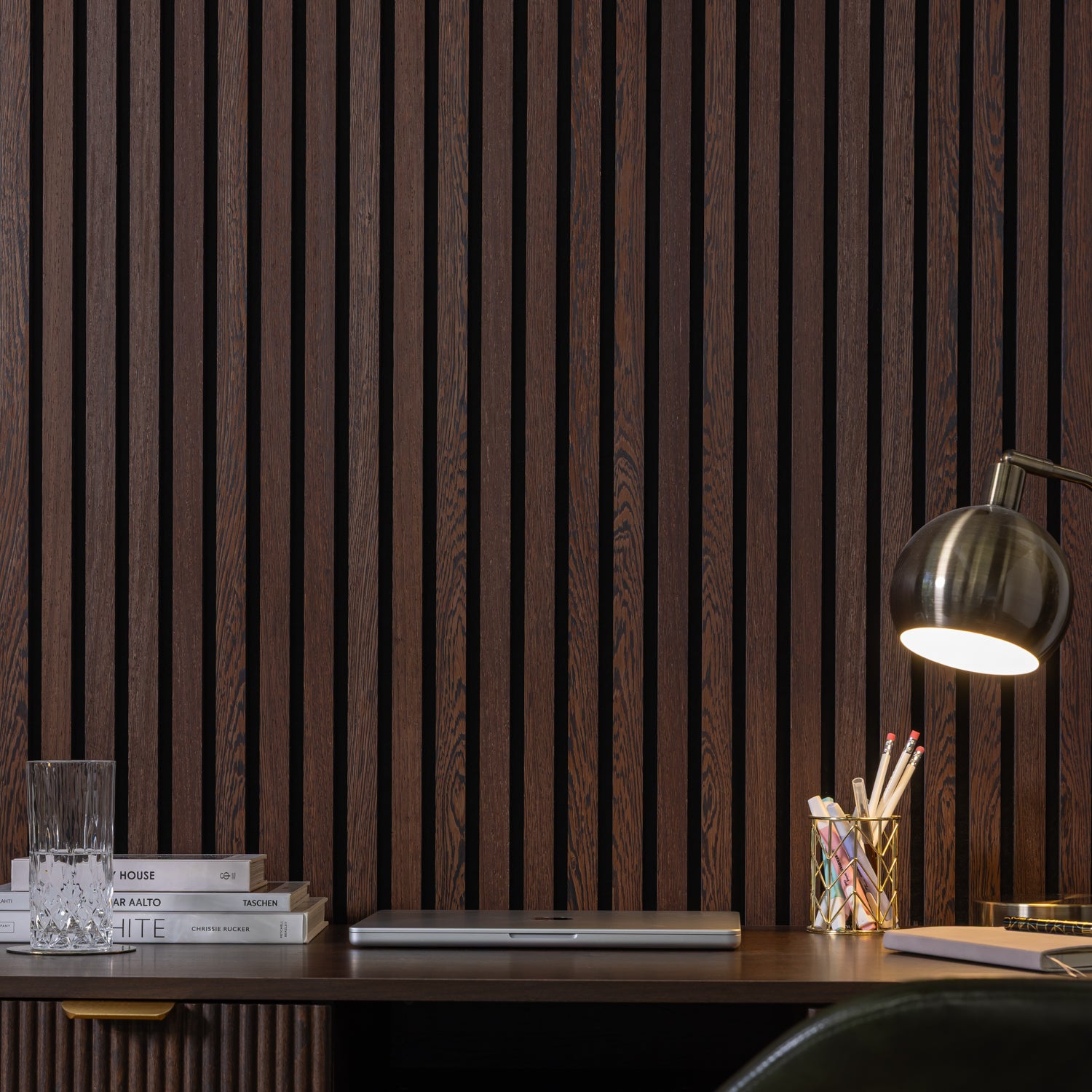 Standard slat width offers a familiar, classic profile with uniform spacing - balancing veneer and felt for a timeless look that suits a wide range of interiors.