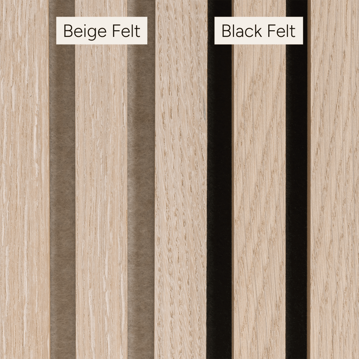 Choose the 'Beige Felt' backing to create a softer, more natural transition between slats, perfect for beige-on-beige or tonal schemes where texture does the talking.